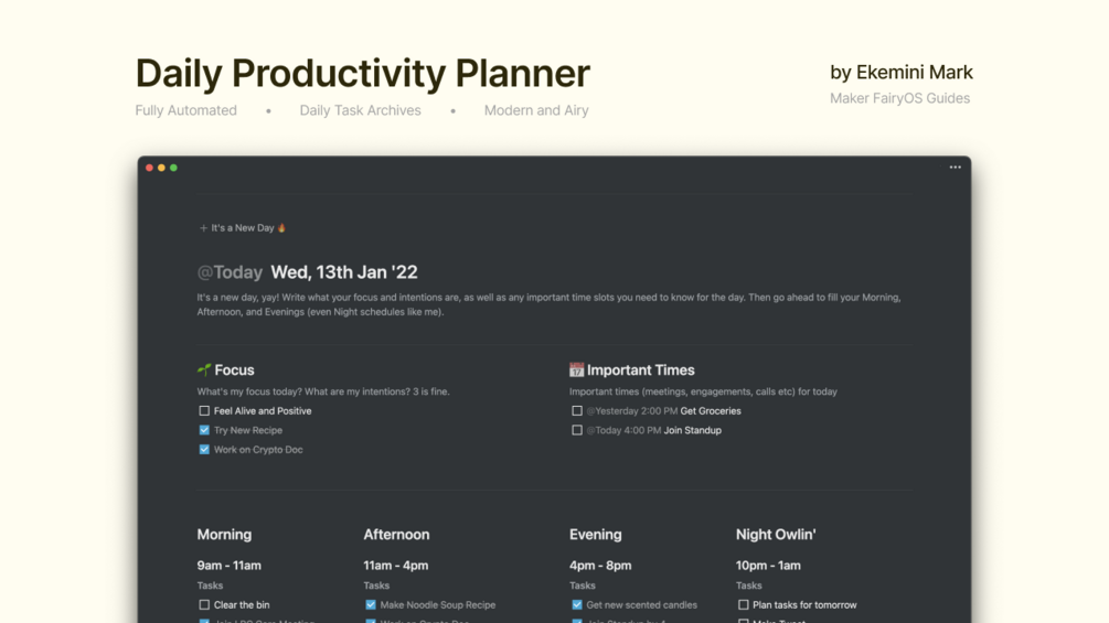 Get this Notion template and begin planning your day like a Pro